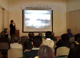 At this day's gathering, the lecturer introduced the harm of Kushiro-shitsugen using pictures of the wetland, plants and animals, explained the Ramsar Convention, and thought about the importance of the wetland with the participants. Also in parallel with the lecture, about 20 sheets of panels introducing Kushiro-shitsugen and activities of KIWC were exhibited in the hall for the whole month of March.