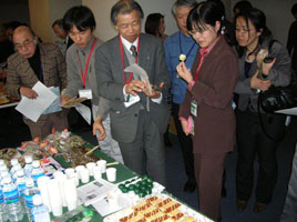 KIWC also exhibited at the "Blessings of Wetlands Exhibition," held in parallel with the symposium, Japanese smelt tsukudani (preserved food boiled in sweetened soy sauce), bottled water of Lake Akan and other blessings of wetlands in the Kushiro region to promote them.