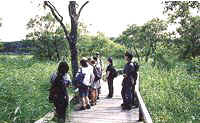 釧路湿原が1980年6月17日に日本最初のラムサール登録湿地に指定されてから、今年で20周年を迎えた。2000年11月22日現在で、同条約に加盟している国は123カ国。登録湿地の数は1041までに増えている。 200締約国、2000登録湿地の実現を目指し、湿地の野生生物保護にだけ注目するのではなく、魚類や水資源など、湿地自然資源の保全と賢明な利用(ワイズユース)、湿地環境の修復や回復による地球環境保全への寄与、さらに、地域レベルでの湿地保全活動や国際協力の普及をめざしたさまざまな活動が世界各地で展開されている。 今年度、釧路国際ウェットランドセンター(KIWC)は、エコツーリズム、湿地の再生などをテーマに、ラムサール条約登録20周年記念事業を企画、実施している。そのひとつとして、2000年8月20日に『湿原をたのしむエコツアー』を実施した。 同事業は、達古武湖畔遊歩道をフィールドとして行われ、3組の親子を含む、12名が参加した。新庄久志KIWC主幹がガイドとして同行し、湿原の音と風景、湿原の木、湿原の水/湧き水、湿原の緑に関するインタープリテーションを行った。 参加者は、木道から湿原の野生生物を観察したり、雑音の多い社会では聞くことのできない鳥や虫の声を耳にするなど、新しい発見に感動していた。また、あまり知られていない湿原の中の湧き水について、温度や量を調べて学習するなど、さまざまな局面から湿原を考えることができた一日となったようである。 エコツアーは、湿原を身近に感じ、湿原の楽しさを理解する機会を提供するとともに、人々の湿地保全に対する意識を高めるのに大変効果的であると考えられている。KIWCでは、今後もエコツアーに注目し、地域住民を対象とした楽しいプログラムを企画していきたい。