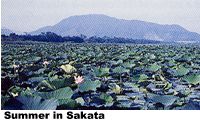 Sakata is located in the Akatsuka district in southwestern Niigata, at 3749' N lat. and 13852' 30" E long. Sakata is also part of the Sado-Yahiko-Yoneyama Quasi-National Park. This lagoon and its surrounding area is designated as a special district under the Natural Parks Law, and also as the Sakata National Protection Area for Birds and Mammals.