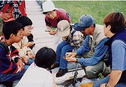 Methods to enable children to closely observe various creatures living in water have also been developed. Using the traditional method of cast netting, instructors catch fish alive and put them in a small aquarium so students can observe them. This method enables children not only to understand fish habitats but also to observe and admire living fish.