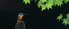 merganser and KAWASEMI Alcedo atthis on the lake shore, and EZOSHIKA