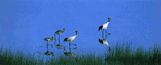 of tits, AOSAGI Ardea cinera jouyi and TANCHO Grus japonensis