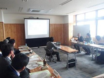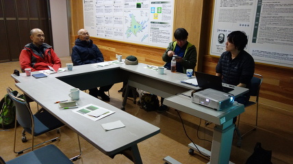 午後からは阿寒湖畔ビジターセンターで尾山委員からマリモの生息分布の現状とその保全対策について説明があり、それについて新庄久志委員長、澁谷辰生委員、藤原伸也委員からの異なる専門の方々との意見交換会を行いました。