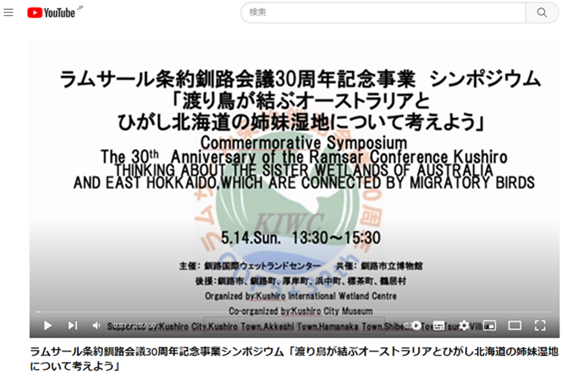 5/14(日)に開催したラムサール条約釧路会議30周年記念事業シンポジウム「渡り鳥が結ぶオーストラリアとひがし北海道の姉妹湿地について考えよう」の動画を公開しました!