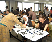 During the training, with the whole-hearted support from the Kushiro City Cultural Organization Liaison Association (instruction) and the Kushiro Volunteer International Exchange Association (interpretation), examples of Japanese culture such as tea ceremony, calligraphy, and flower arrangement were introduced, and the trainees could have an opportunity to experience them. They wrote their names with a brush and had their photos taken with their instructors in kimono enjoying easy access to Japanese traditional culture. At the same time, home visits and cultural exchange gatherings were carried out, and the participants promoted friendly relations in various ways with the people in the Kushiro region. The warm-heartedness of the Kushiro people took the participants' minds off the coldness of winter and their hearty hospitality was highly valued along with the quality of the training program in the questionnaire after the workshop.