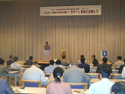 On July 23, 2003, an international workshop for introducing case study examples of how Japan and other countries are endeavoring for wise use of lagoon (brackish-water lake) wetlands and considering future challenges was held at the Kushiro Tourism & International Relations Center. Commemorating the 10th anniversary of the Ramsar Conference in Kushiro, this workshop was sponsored by the Organizing Committee of the International Workshop on Wise Use of Ramsar Wetlands. KIWC took part in the workshop as an organizing member.