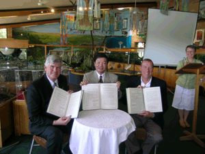 From November 4 to 9, 2004, representatives of six municipalities associated with the KIWC visited Newcastle City and Port Stephens district, Australia, where sister wetlands were located. With the year falling on the 10th anniversary of the foundation of sister-wetland affiliation agreements concluded in 1994, three representatives, including the KIWC President (Yoshitaka Ito, Mayor of Kushiro City) visited a wetland located in the Hunter River Estuary (Kooragang Wetland), as well as a number of its surrounding cities to discuss the renewal of the affiliation agreements and future exchange projects.