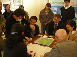 Chief Ranger of the Sanctuary and a member of the technical committee, 15 participants experienced environmental education programs first-hand with Red-crowned cranes as the main subject. The two officials involved in the nature preservation in Bhutan who happened to be visiting Kushiro for JICA training also participated in the programs and enjoyed learning about the environment surrounding Red-crowned cranes and various phenomena that occur in the wetland through card games. After experiencing the programs, members of the committee shared advice on and opinions of phenomena taken up during the game, ways to improve the rules, and how to make best use of programs in the future.