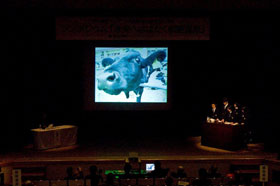 In the symposium, Mr. Yoshihiro Natori introduced the background of the conservation of Kushiro-shitsugen, then Dr. Tatsuichi Tsujii and Mr. Hisashi Shinsho had a talk on the utilization of the wetland for the future and proposed fresh ideas such as utilization of balloons and wetland exploration. Next, local students from elementary to high schools made presentations about what they felt through study of water clarification using wetland plants, extermination of alien species as well as the exchange activities between children of other Ramsar sites, and about a way of interacting with wetland.