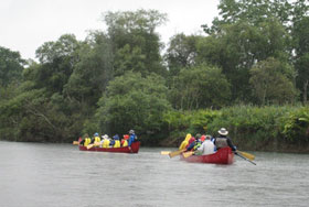 On September 9, 2012, a canoe survey was conducted to investigate the environment of the Kushiro River's middle course, where the old meandering channel had been restored three years earlier as part of the Kushiro Wetland Nature Restoration Project.