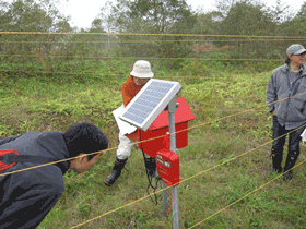 Attendees visited one of the town's several Citizens' Forests where tree-planting activities have been conducted since 2011. They observed the environments of afforested areas, solar-powered electric fences designed to keep out deer, pest control equipment and other facilities with guide commentary from the staff of the Akkeshi Town Office's Environmental Policy Section.