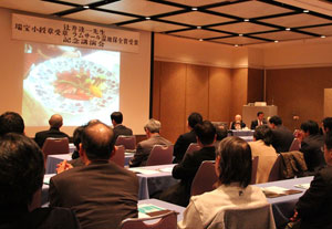 To celebrate his receipt of the Ramsar Wetland Conservation Award and the Order of the Sacred Treasure, KIWC asked Dr. Tatsuichi Tsujii to give a commemorative lecture in Kushiro City on November 21, 2012, with the title "The Future of Ramsar Wetlands." Dr. Tsujii spoke to an audience about the regional fruits of wetlands, such as funazushi (crucian carp sushi) made with fish from Lake Biwa and peaty whisky, and highlighted how eco-friendly and wise use of these benefits could help to strike a balance between conservation and economic vitality.